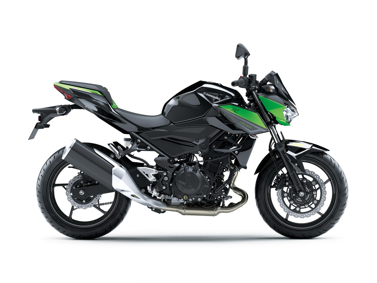 The new Z400 combines the sharp, aggressive style of the Z650 with the large-volume design of the Z300 to create an aggressive, agile, masculine impression. Its muscular, athletic bodywork reflects the increased performance while forming a flowing design that appears to float above the engine. Like other models in the Z Series, sugomi design elements (crouching stance, low-positioned head and upswept tail) give it a silhouette instantly recognisable as a Kawasaki Supernaked.