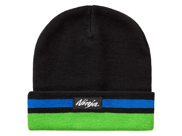 Strikket lue med racinglogoer i Kawasaki WSBK teamfarger