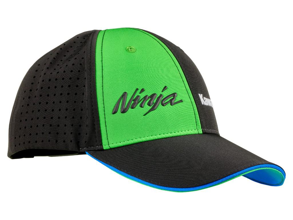 Caps med seks paneler og ventilerte sidepaneler i Kawasaki WSBK-teamets farger.