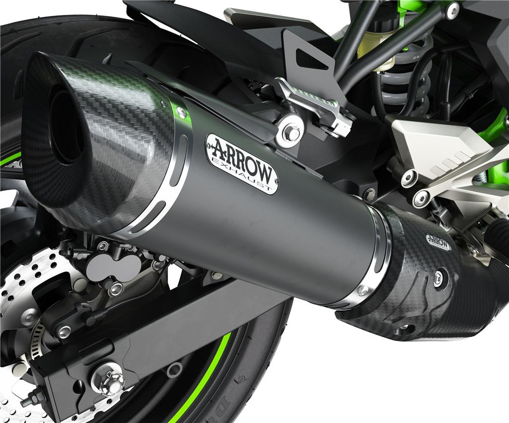 Fullt kompatibel med Euro 5‑utslippskrav. Systemet er homologert (WVTA) og ECE‑typegodkjent i samarbeid med Kawasaki Motors Europe og Arrow Special Parts. Et varmebeskyttelsesskjold i karbonfiber følger med for ekstra beskyttelse og et mer raffinert uttrykk.
