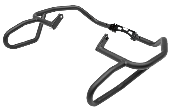 Motorbeskyttelsen i stålrør (standardutstyr på Adventure) bidrar til å beskytte motoren og sidepanelene ved velt, samtidig som de forsterker det robuste adventure-utseendet.