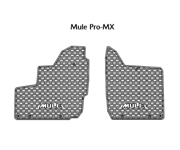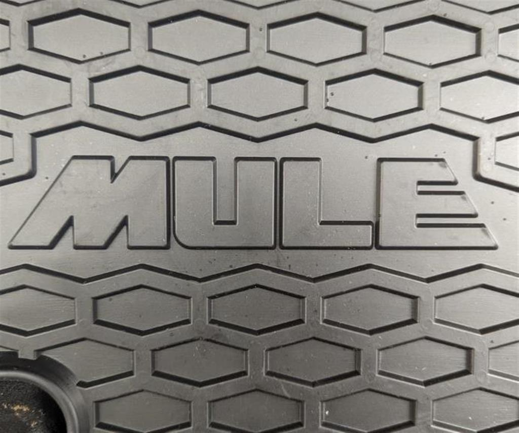 Leveres som et par (foran) med alt festemateriell inkludert. Disse slitesterke SBR*-mattene har en bikubestruktur som sikrer svært godt grep under alle forhold, modelltilpasset full dekning og Mule-logoer. Gummimaterialet bidrar også til å redusere støynivå.